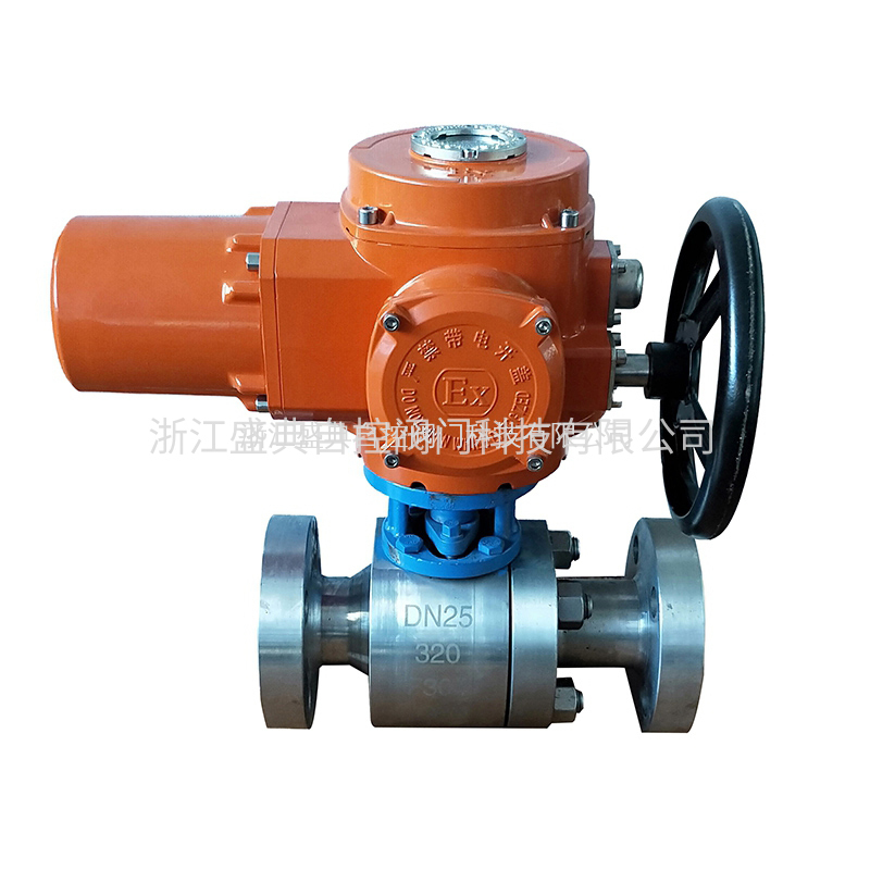 电动锻钢球阀的球体是弹性的。球体和阀座密封圈都采用金属材料制造,密封比压很大,依靠介质本身的压力已达不到密封的要求,必须施加外力。当关闭通道时,用阀杆的楔形头使球体涨开与阀座压紧达到密封。在转动球体之前先松开楔形头,球体随之恢复原原形,使球体与阀座之间出现很小的间隙,可以减少密封面的摩擦和操作扭矩