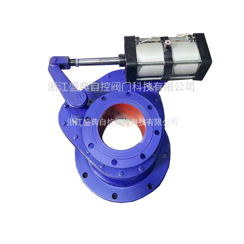气动执行机构通过转轴和摆臂使得阀板转动,阀板与密封面之间加载螺旋压缩弹簧,弹簧力始终使阀板密封面与密封环面紧密贴合,且又允许阀板在垂直方向移动,从而有助于补偿阀门零部件的热胀冷缩,并能克眼任何背压变化对密封的影响,还能防止颗粒状介 质进入密封面之间。阀板密封面对密封环面在切线方向上的摩擦力之差使得阀板能在启闭过程中产生自转,此特性使得密封面之间会产生研磨,抛光作用。